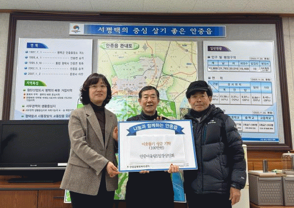 [NWS¹æ¼Û=Çѽ¸ñ ±âÀÚ]¾ÈÁß¾î¿ï¸²5ÀÏÀå»óÀÎȸ´Â Áö³ 6ÀÏ ÆòÅýà ¾ÈÁßÀ¾ ÇàÁ¤º¹Áö¼¾Å͸¦ ¹æ¹®ÇØ ¾î·Á¿î ÀÌ¿ôÀ» À§ÇÑ ¼º±Ý 100¸¸ ¿øÀ» ±âºÎÇß´Ù.