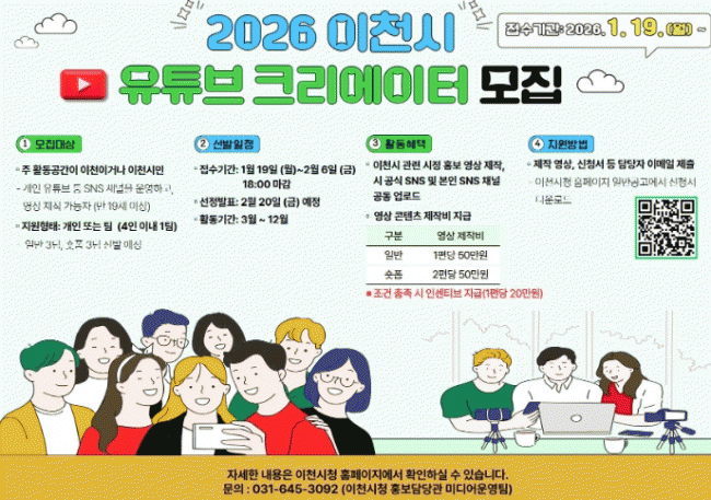 | ÀÌõ½Ã, 2026³â ½Ã¹Î À¯Æ©ºê ¿µ»óÅ©¸®¿¡ÀÌÅÍ 3±â ¸ðÁý ¿À´Â 2¿ù 6ÀϱîÁö ÀÏ¹Ý ¹× ¼ôÆû ¿µ»ó ºÐ¾ß °¢ 3ÆÀ ¸ðÁý =Çѽ¸ñ ±âÀÚ |