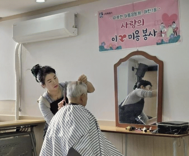 [NWS¹æ¼Û=Çѽ¸ñ ±âÀÚ]¼ö¿ø½Ã ¿µÅ뱸 ¸Åź1µ¿ÇàÁ¤º¹Áö¼¾ÅÍ´Â Áö³ 13ÀÏ, ÀÚ¿øºÀ»ç Àç´É±âºÎ·Î ÀÌ¡¤¹Ì¿ë ¼ºñ½º¸¦ ÁøÇàÇϰí Ãë¾à°¡±¸ 3¸íÀÇ ¾î¸£½Å ¸Ó¸®¸¦ Á¤°¥ÇÏ°Ô ¼ÕÁúÇÏ¸ç »îÀÇ È°·ÂÀ» ºÒ¾î³Ö´Â ¶æ±íÀº ½Ã°£À» ¸¶·ÃÇß´Ù.