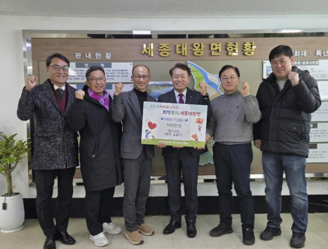 [NWS¹æ¼Û=Çѽ¸ñ ±âÀÚ]Áö³­ 13ÀÏ ¼¼Á¾´ë¿Õ¸é ¹é¼®2¸®¿¡ À§Ä¡ÇÑ Àå¼ö±³È¸¿¡¼­ °ü³» ¾î·Á¿î ÀÌ¿ôÀ» À§ÇÑ ¼º±Ý 100¸¸¿øÀ» ¼¼Á¾´ë¿Õ¸é Áö¿ª»çȸº¸ÀåÇùÀÇü¿¡ ±âŹÇß´Ù.