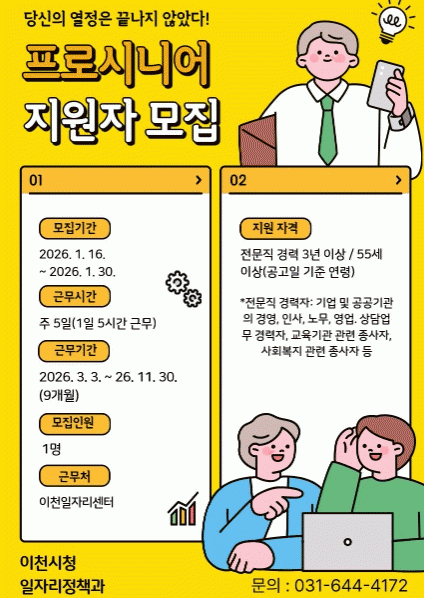 | ÀÌõ½Ã, ¡®2026³â ÇÁ·Î½Ã´Ï¾î ÀÏÀÚ¸®»ç¾÷¡¯ Âü¿©ÀÚ ¸ðÁý ÀÏÀÚ¸® ¹ß±¼¡¤µ¿Çà¸éÁ¢ µî Ãë¾÷ Áö¿ø ¿ªÇÒ ¼öÇà =ÇãÀº¼ ±âÀÚ |