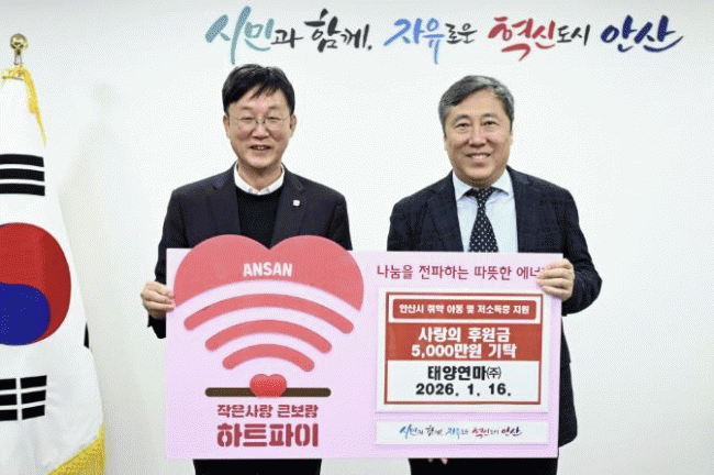 À̹α٠¾È»ê½ÃÀåÀº ¡°¾î·Á¿î °æ¿µ ¿©°Ç ¼Ó¿¡¼µµ ¸Å³â ÀØÁö ¾Ê°í Áö¿ª»çȸ¸¦ À§ÇØ ¼º±ÝÀ» ÄèÃ´ÇØ ÁֽŠÅ¾翬¸¶(ÁÖ) ½Å¼®È£ »çÀå´Ô²² Áø½ÉÀ¸·Î °¨»çµå¸°´Ù¡±¸ç ¡°º¸³»Áֽмº±ÝÀº ²À ÇÊ¿äÇÑ °÷¿¡ µû¶æÇÑ ¸¶À½À» ´ã¾Æ Àü´ÞÇϰڴ١±°í È´äÇß´Ù.