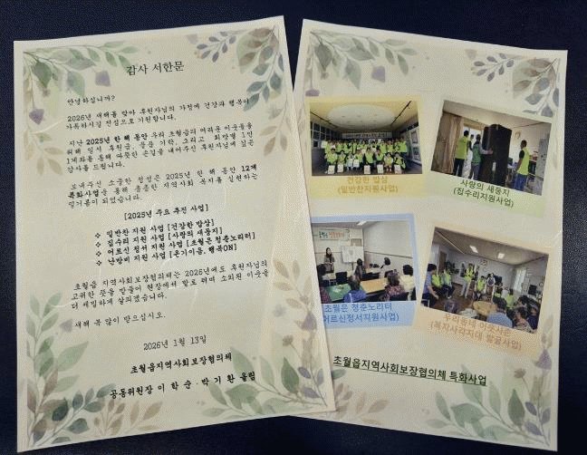 [NWS¹æ¼Û=Çѽ¸ñ ±âÀÚ]±¤Áֽà ÃÊ¿ùÀ¾ Áö¿ª»çȸº¸ÀåÇùÀÇü´Â 2025³â ÇÑ ÇØ µ¿¾È Áö¿ª ³» ¾î·Á¿î ÀÌ¿ôÀ» À§ÇØ ³ª´®À» ½ÇõÇÑ ÈÄ¿øÀÚ 145¸í¿¡°Ô °¨»çÀÇ ¸¶À½À» ´ãÀº ¼Çѹ®À» ¹ß¼ÛÇß´Ù°í 19ÀÏ ¹àÇû´Ù.
