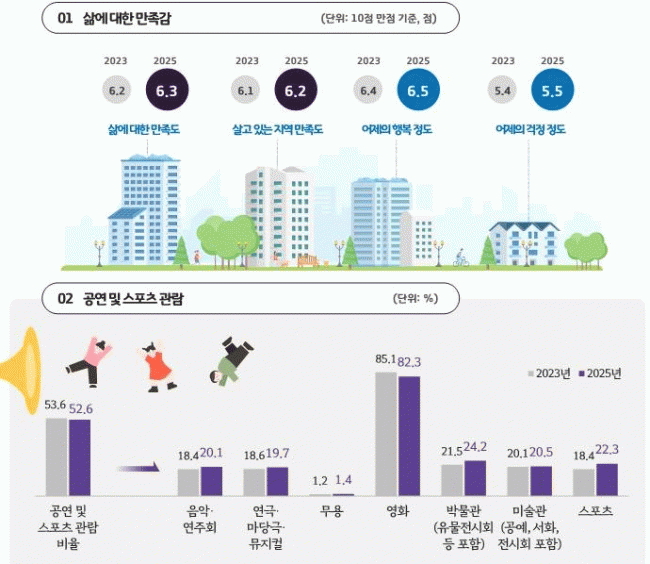 À̹ø °á°ú´Â 2021³âºÎÅÍ 2025³â±îÁö »îÀÇ ¸¸Á·¡¤Çູ°¨, ¿©°¡¡¤¹®È¡¤°ü±¤ Âü¿©, »ýȰ¡¤¾ÈÀü ÀνÄ, °æÁ¦ ü°¨ Àü¹Ý¿¡¼ ¿Ï¸¸ÇÏÁö¸¸ ÀϰüµÈ °³¼± È帧À» º¸ÀÌ´Â Á¡ÀÌ Æ¯Â¡ÀÌ´Ù.