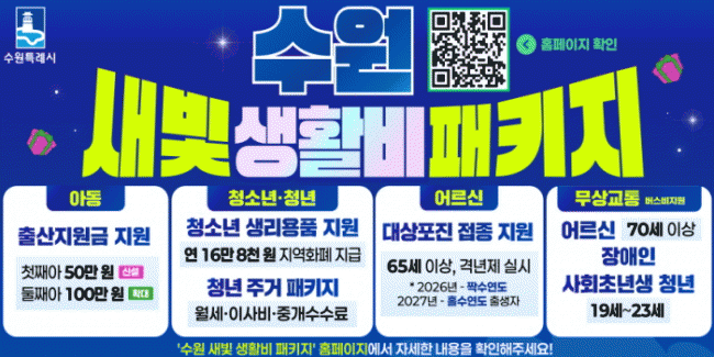 | ¼ö¿ø½Ã, Ãâ»ý¾ÆºÎÅÍ ¾î¸£½Å±îÁö¡¦»õºû »ýȰºñ ÆÐŰÁöÀÇ ¸ðµç °Í 2026 ¼ö¿ø½Ã¹ÎÀ» À§ÇÑ ¼ö¿ø½Ã »ýȰºñ Áö¿ø »ç¾÷ 7Á¾ ¡®ÁÖ¸ñ¡¯ =Çѽ¸ñ ±âÀÚ |