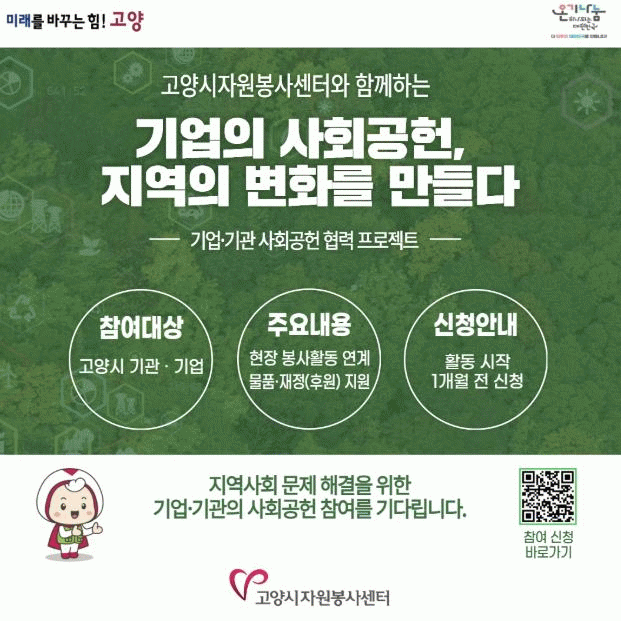 °í¾ç½ÃÀÚ¿øºÀ»ç¼¾ÅÍ °ü°èÀÚ´Â ¡°±â¾÷°ú ±â°üÀÌ Áö¿ª»çȸ ¹®Á¦Çذῡ ÇÔ²² Âü¿©ÇÒ ¼ö ÀÖ´Â Çù·Â ±¸Á¶¸¦ ¸¸µå´Â °ÍÀÌ Çٽɡ±À̶ó¸ç ¡°¾ÕÀ¸·Îµµ Áö¿ª»çȸ¿Í ÇÔ²² ¼ºÀåÇÏ´Â »çȸ°øÇå ÆÄÆ®³Ê½ÊÀ» Áö¼ÓÀûÀ¸·Î È®´ëÇØ ³ª°¡°Ú´Ù¡±°í ¸»Çß´Ù.