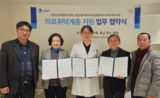 [NWS¹æ¼Û=Çѽ¸ñ ±âÀÚ]¼ö¿ø½Ã ±Ç¼±±¸ ±Ç¼±2µ¿ÇàÁ¤º¹Áö¼¾ÅÍ´Â Áö³ 20ÀÏ, ±Ç¼±2µ¿ Áö¿ª»çȸº¸ÀåÇùÀÇü, ¿ì¸®Àdz»°úÀÇ¿ø°ú ÇÔ²² Áö¿ª ³» Ãë¾à°èÃþ ÀǷẹÁöÇâ»ó À§ÇÑ ¾÷¹«Çù¾àÀ» ü°áÇß´Ù°í ¹àÇû´Ù.