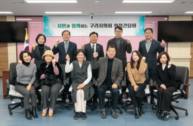 [NWS¹æ¼Û=Çѽ¸ñ ±âÀÚ]±¸¸®½ÃÀÇȸ´Â 1¿ù 21ÀÏ ¿ÀÈÄ 1½Ã ±¸¸®½ÃÀÇȸ ¸ÖƼ·ë¿¡¼­ ±¸¸®½Ã »ç¸³À¯Ä¡¿ø¿¬ÇÕȸ(ȸÀå Á¤Àº°æ)¿Í °£´ãȸ¸¦ °³ÃÖÇÏ¿© À̳¯ °£´ãȸ¿¡´Â ½Åµ¿È­ ÀÇÀåÀ» ºñ·ÔÇÑ ±¸¸®½ÃÀÇȸ ÀÇ¿ø°ú »ç¸³À¯Ä¡¿ø¿¬ÇÕȸ ¼Ò¼Ó ¿øÀå 6¸í µî 15¿© ¸íÀÌ Âü¼®Çß´Ù.