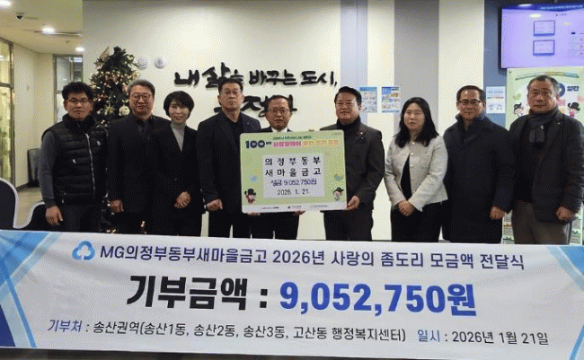 [NWS¹æ¼Û=Çѽ¸ñ ±âÀÚ]ÀÇÁ¤ºÎ½Ã ¼Û»ê3µ¿ÇàÁ¤º¹Áö¼¾ÅÍ´Â 1¿ù 21ÀÏ ÀÇÁ¤ºÎµ¿ºÎ»õ¸¶À»±Ý°í°¡ Áö¿ª»çȸ ÀÌ¿ôµ½±â¸¦ À§ÇÑ ¡®»ç¶ûÀÇ Á»µµ¸®¡¯ ¿îµ¿ÀÇ ÀÏȯÀ¸·Î ¼º±Ý 905¸¸2õ750¿øÀ» ±âŹÇß´Ù°í ¹àÇû´Ù.