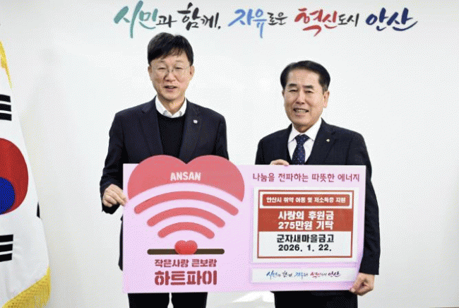 | ¾È»ê½Ã, ±ºÀÚ»õ¸¶À»±Ý°í·ÎºÎÅÍ »ç¶ûÀÇ ÈÄ¿ø±Ý 275¸¸ ¿ø ±âŹ¹Þ¾Æ =Çѽ¸ñ ±âÀÚ |