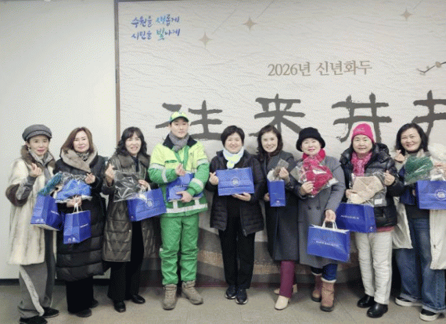 [NWS¹æ¼Û=Çѽ¸ñ ±âÀÚ]¼ö¿ø ¾î¿ï¸²Çì¶óºÀ»çȸ´Â Áö³ 29ÀÏ, °Ü¿ïö Ãß¿î ³¯¾¾ ¼Ó¿¡¼ Áö¿ªÀÇ ÄèÀûÇÑ È¯°æÀ» À§ÇØ ¾Ö¾²°í Àִ ȯ°æ°ü¸®¿øµéÀÇ ³ë°í¸¦ °Ý·ÁÇϱâ À§ÇØ µû¶æÇÑ °Ý·Á ¹°Ç°À» Àü´ÞÇß´Ù.
