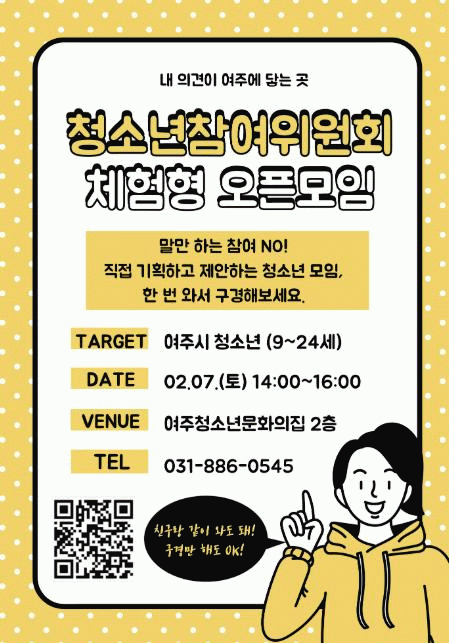 üÇèÇü ¿ÀǸðÀÓÀº 2¿ù 7ÀÏ ¿ÀÈÄ 2½ÃºÎÅÍ 4½Ã±îÁö ¿©ÁÖû¼Ò³â¹®ÈÀÇÁý 2Ãþ û¼Ò³âȰµ¿½Ç¿¡¼ ÁøÇàµÇ¸ç, ûÂüÀ§ Á¤±â¸ðÀÓÀ» Âü°üÇϰí Ȱµ¿ ³»¿ëÀ» »ìÆìº¼ ¼ö ÀÖ´Ù. Âü¿©Àڴ ģ±¸¿Í ÇÔ²² ¹æ¹®Çϰųª ±¸°æ¸¸ ÇØµµ °¡´ÉÇϸç, ¼ÒÁ¤ÀÇ ±â³äǰ°ú °£½Äµµ Á¦°øµÈ´Ù.