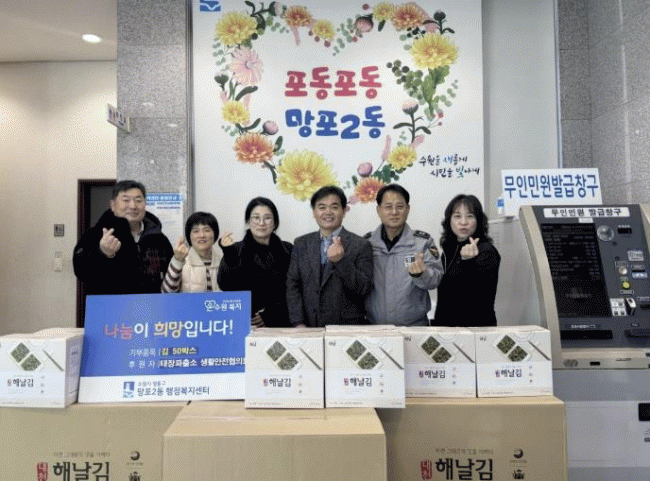 [NWS¹æ¼Û=Çѽ¸ñ ±âÀÚ]¿µÅ뱸 ¸ÁÆ÷2µ¿ ÇàÁ¤º¹Áö¼¾ÅÍ´Â Áö³ 2ÀÏ, ÅÂÀåÆÄÃâ¼Ò »ýȰ¾ÈÀüÇùÀÇȸ°¡ ¼³ ¸íÀýÀ» ¸Â¾Æ Àú¼Òµæ °¡Á¤À» Áö¿øÇϱâ À§ÇØ ±è 50¹Ú½º¸¦ ¸ÁÆ÷2µ¿ ÇàÁ¤º¹Áö¼¾ÅÍ(µ¿Àå ÀÌ¿ëÅÂ)¿¡ ±âŹÇß´Ù°í ¹àÇû´Ù.