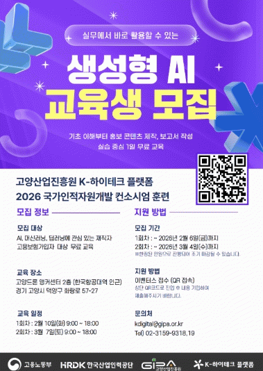 [NWS¹æ¼Û=ÇãÀº¼­ ±âÀÚ]°í¾ç»ê¾÷ÁøÈï¿ø »êÇÏ K-ÇÏÀÌÅ×Å©Ç÷§Æû Áö¿ø´ÜÀÌ ¡®2026³â ½Ç¹«¿¡¼­ ¹Ù·Î ¾²´Â »ý¼ºÇü AI °úÁ¤¡¯ ±³À°»ýÀ» ¸ðÁýÇÑ´Ù.