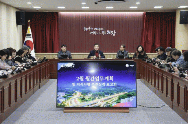 ±è ½ÃÀåÀº Áö³ÇØ 12¿ù ±Þ¼º ½É±Ù°æ»öÀ¸·Î ¾à 50Àϰ£ º´¿ø Ä¡·á¿Í ÀçȰ¿¡ Àü³äÇÑ ¹Ù ÀÖ´Ù. º¹±Í ÈÄ Ã³À½ ÁÖÀçÇÑ À̹ø °£ºÎȸÀÇ¿¡¼ ±è ½ÃÀåÀº °¢ ºÎ¼º° ¾÷¹« ÃßÁø ÇöȲ°ú 2¿ù ÁÖ¿ä °èȹÀ» º¸°í¹Þ°í, ÁÖ¿ä Çö¾È ¹× »ç¾÷ ÃßÁø »óȲÀ» ²Ä²ÄÈ÷ Á¡°ËÇß´Ù.