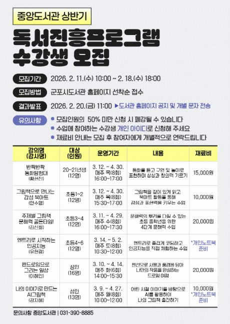| ±ºÆ÷½Ã Áß¾Óµµ¼°ü, 2026³â »ó¹Ý±â µ¶¼ÁøÈïÇÁ·Î±×·¥ ¿î¿µ =Çѽ¸ñ ±âÀÚ |