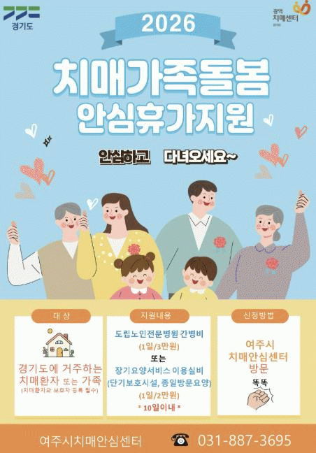 [NWS¹æ¼Û=Çѽ¸ñ ±âÀÚ]¿©ÁÖ½ÃÄ¡¸Å¾È½É¼¾ÅÍ´Â 2026³â¿¡µµ Ä¡¸ÅȯÀÚ¸¦ µ¹º¸´Â °¡Á·ÀÌ Àá½Ã³ª¸¶ µ¹º½¿¡¼ ¹þ¾î³ª ÈÞ½ÄÀ» ÃëÇÒ ¼ö ÀÖµµ·Ï¡ºÄ¡¸Å°¡Á·µ¹º½ ¾È½ÉÈÞ°¡Á¦¡»¸¦ Áö¼ÓÀûÀ¸·Î ¿î¿µÇÑ´Ù.