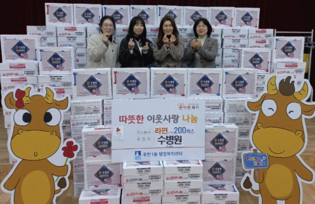 [NWS¹æ¼Û=Çѽ¸ñ ±âÀÚ]¼öº´¿øÀº Áö³ 4ÀÏ, ¼³ ¸íÀýÀ» ¸Â¾Æ ¾î·Á¿î ÀÌ¿ôµéÀ» À§ÇØ ¶ó¸é 200¹Ú½º¸¦ ¿ì¸¸1µ¿ ÇàÁ¤º¹Áö¼¾ÅÍ¿¡ ±âºÎÇϸç ÀÌ¿ô»ç¶ûÀ» ½ÇõÇß´Ù.