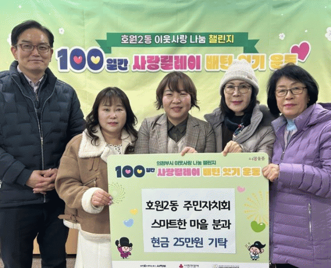 | ÀÇÁ¤ºÎ½Ã È£¿ø2µ¿ ÁÖ¹ÎÀÚġȸ, 100Àϰ£ »ç¶û¸±·¹ÀÌ ¹èÅÏ Àձ⠵¿Âü =Çѽ¸ñ ±âÀÚ |