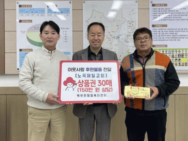 [NWS¹æ¼Û=Çѽ¸ñ ±âÀÚ]¿¬Ãµ±º ¹éÇÐ¸é ³ë°îÁ¦Àϱ³È¸´Â Áö³­ 4ÀÏ ¹éÇиéÇàÁ¤º¹Áö¼¾Å͸¦ ¹æ¹®ÇØ ¼³ ¸íÀýÀ» ¸Â¾Æ ¼Ò¿Ü°èÃþ¿¡°Ô Àü´ÞÇØ´Þ¶ó¸ç ³óÃÌ»ç¶û»óǰ±Ç 150¸¸ ¿øÀ» ±âŹÇß´Ù.