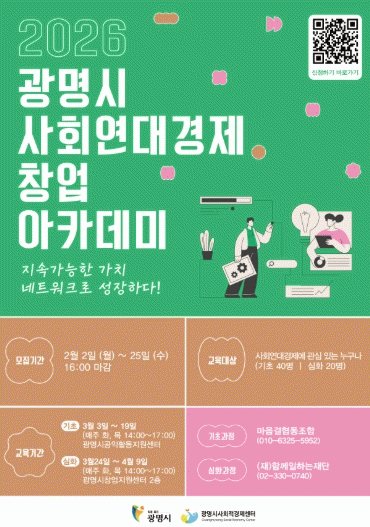 | ±¤¸í½Ã, ¡®2026 »çȸ¿¬´ë°æÁ¦ â¾÷ ¾ÆÄ«µ¥¹Ì¡¯ ¼ö°»ý ¸ðÁý 2¿ù 25ÀϱîÁö Á¢¼ö¡¦ ±âÃʺÎÅÍ ½ÇÀü â¾÷±îÁö 12ȸÂ÷ ¿ø½ºÅé ±³À° =ÇãÀº¼ ±âÀÚ |