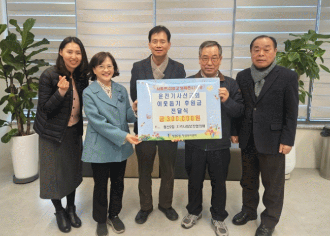 [NWS¹æ¼Û=Çѽ¸ñ ±âÀÚ]±¤¸í¿îÀü±â»ç¼±±³È¸´Â Áö³ 4ÀÏ Ã¶»ê2µ¿ Áö¿ª»çȸº¸ÀåÇùÀÇü¿¡ °ü³» ¾î·Á¿î ÀÌ¿ôÀ» µ½±â À§ÇÑ ¼º±Ý 30¸¸ ¿øÀ» Àü´ÞÇß´Ù.