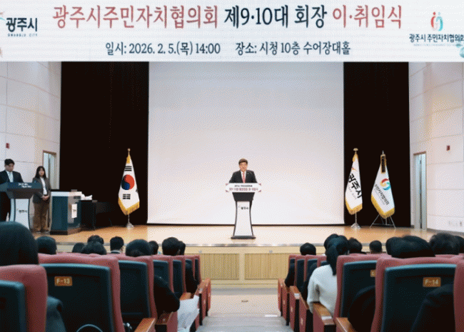 [NWS¹æ¼Û=Çѽ¸ñ ±âÀÚ]±¤Áֽô 5ÀÏ ½Ãû ¼ö¾îÀå´ëȦ¿¡¼ ¡®Á¦9¡¤10´ë ±¤Áֽà ÁÖ¹ÎÀÚÄ¡ÇùÀÇȸÀå ÀÌ¡¤ÃëÀӽġ¯À» °³ÃÖÇß´Ù.