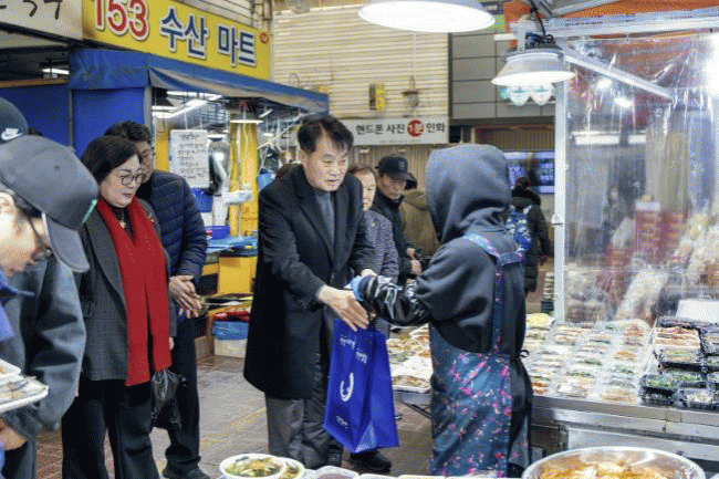 [NWS¹æ¼Û=Çѽ¸ñ ±âÀÚ]ÇÏÀºÈ£ ±ºÆ÷½ÃÀåÀº ¼³ ¸íÀýÀ» ¾ÕµÐ Áö³ 5ÀÏ °ü³» ÀüÅë½ÃÀåÀ» ã¾Æ À庸±â Çà»ç¸¦ ÁøÇàÇÏ¸ç ½ÃÀå »óÀεéÀ» °Ý·ÁÇß´Ù.