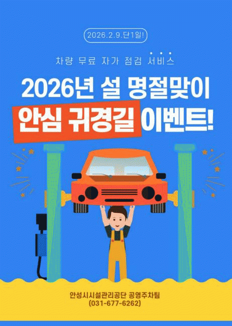 | ¾È¼º½Ã½Ã¼³°ü¸®°ø´Ü, ¾Æ¾çÁö±¸ Á¦2°ø¿µÁÖÂ÷Àå '¾È½É ±Í°æ±æ' Ä·ÆäÀÎ ÃßÁø ¾ÈÀüÇÑ ±Í¼º±æ ¹× ÁÖÂ÷Àå È«º¸ Ȱ¼ºÈ¸¦ À§ÇÑ Â÷·® ¹«·á ÀÚ°¡ Á¡°Ë ¼ºñ½º ¿î¿µ =Çѽ¸ñ ±âÀÚ |