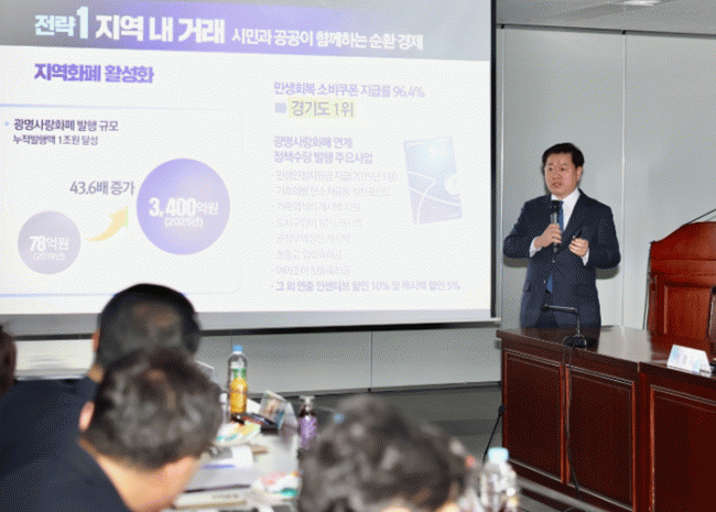 | ¹Ú½Â¿ø ±¤¸í½ÃÀå ¡°Áö¿ª°øµ¿Ã¼ ÀÚ»êÈ·Î ¼øÈ¯°æÁ¦ ½ÇÇö¡± ¹Ú ½ÃÀå, 9ÀÏ Áö¹æ½Ã´ëÀ§¿øÈ¸ ¡®Á¦1Â÷ Áö¿ª¼øÈ¯°æÁ¦ Ȱ¼ºÈ Æ÷·³¡¯¿¡¼ »ç·Ê ¹ßÇ¥ =ÇãÀº¼ ±âÀÚ |