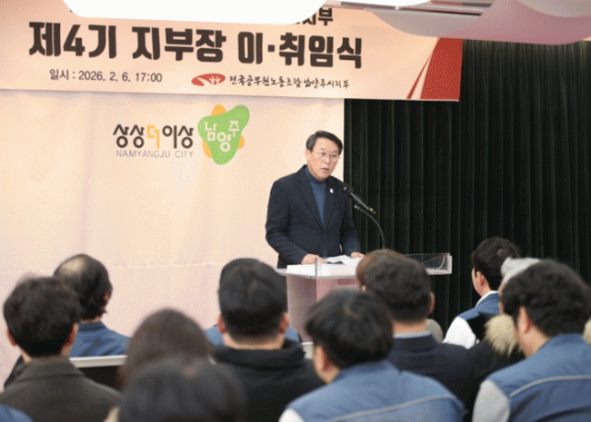 [NWS¹æ¼Û=Çѽ¸ñ ±âÀÚ]³²¾çÁֽô 6ÀÏ ½Ãû ¿©À¯´ç¿¡¼ Àü±¹°ø¹«¿ø³ëµ¿Á¶ÇÕ ³²¾çÁÖ½ÃÁöºÎ°¡ Á¦4±â ÁöºÎÀå ÀÌ¡¤ÃëÀÓ½ÄÀ» ¿¾ú´Ù°í 9ÀÏ ¹àÇû´Ù.