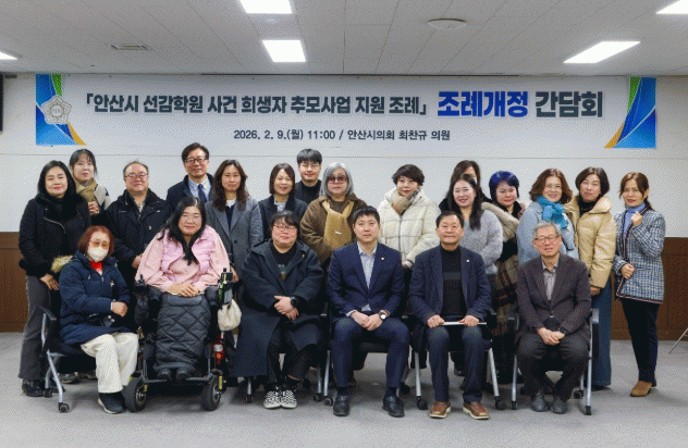 [NWS¹æ¼Û=Çѽ¸ñ ±âÀÚ]¾È»ê½ÃÀÇȸ ÃÖÂù±Ô ÀÇ¿øÀº 2¿ù 9ÀÏ ¾È»ê½ÃÀÇȸ 3Ãþ ´ëȸÀǽǿ¡¼ ¡®¾È»ê½Ã ¼±°¨Çпø »ç°Ç Èñ»ýÀÚ Ã߸ð»ç¾÷ Áö¿ø Á¶·Ê¡¯ ÀϺΰ³Á¤À» À§ÇÑ °£´ãȸ¸¦ °³ÃÖÇß´Ù.