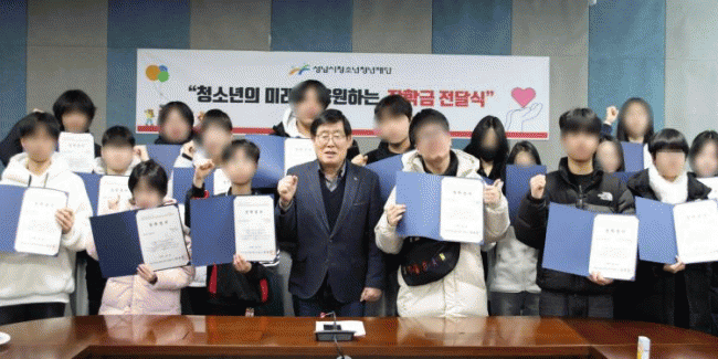 [NWS¹æ¼Û=Çѽ¸ñ ±âÀÚ]¼º³²½Ãû¼Ò³âû³âÀç´ÜÀº 2¿ù 9ÀÏ, ¼º³²½Ã Ãë¾à°èÃþ ¹× À§±â û¼Ò³â 18¸í¿¡°Ô ÃÑ 1,800¸¸ ¿ø ±Ô¸ðÀÇ ÀåÇбÝÀ» Àü´ÞÇß´Ù°í ¹àÇû´Ù.