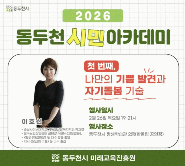[NWS¹æ¼Û=Çѽ¸ñ ±âÀÚ]µ¿µÎõ½Ã´Â ¿À´Â 2¿ù 26ÀÏ ¿ÀÈÄ 7½Ã, Æò»ýÇнÀ°ü¿¡¼ ÀÌÈ£¼± °»ç¸¦ ÃÊÃ»ÇØ ¡®³ª¸¸ÀÇ ±â»Ý ¹ß°ß°ú Àڱ⵹º½ ±â¼ú¡¯À» ÁÖÁ¦·Î 2026³â µ¿µÎõ ½Ã¹Î¾ÆÄ«µ¥¹Ì Á¦1°À» °³ÃÖÇÑ´Ù°í ¹àÇû´Ù.