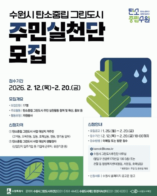 ¼ö¿ø½Ã´Â ź¼ÒÁ߸³ ±×¸°µµ½Ã ÁֹνÇõ´Ü È®´ë ¿î¿µ¿¡ ¸ÂÃç Âü¿©ÀÚ ¿ª·®À» ³ôÀÌ´Â ±³À°°ú ºÐ°úº° ½Çõ Ȱµ¿À» ü°èÈ­ÇØ ÁֹΠÁÖµµÀÇ Åº¼ÒÁ߸³ ½ÇõÀÌ Áö¼ÓµÇµµ·Ï Áö¿øÇÒ ¿¹Á¤ÀÌ´Ù.