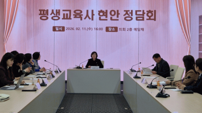 [NWS¹æ¼Û=Çѽ¸ñ ±âÀÚ]°æ±âµµÀÇȸ ±³À°±âȹÀ§¿øÈ¸ ±è¿µÈñ ÀÇ¿ø(´õºÒ¾î¹ÎÁÖ´ç, ¿À»ê1)Àº Áö³ 11ÀÏ °æ±âµµÀÇȸ ¿¹´ãä¿¡¼ (»ç)Çѱ¹Æò»ý±³À°»çÇùȸ °ü°èÀÚµé°ú Á¤´ãȸ¸¦ °®°í, Æò»ý±³À°»çÀÇ Àü¹®¼º °È¸¦ À§ÇÑ º¸¼ö±³À° Á¦µµ °³¼± Çʿ伺¿¡ ´ëÇØ ³íÀÇÇß´Ù.