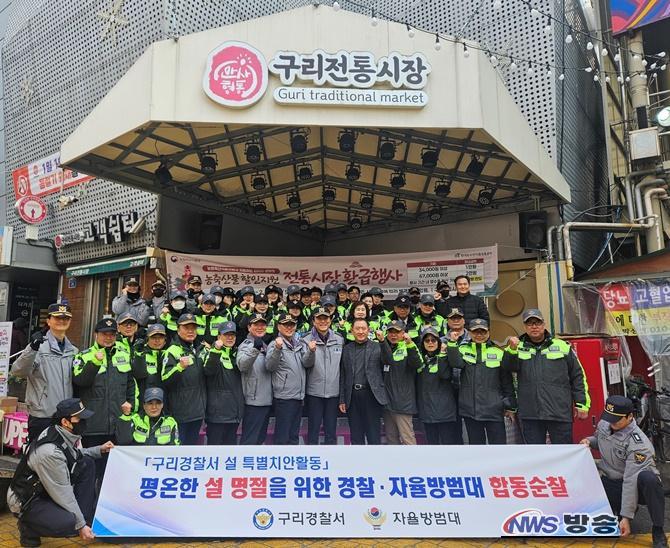 À̳¯ ÇÕµ¿¼øÂû¿¡´Â ¹Ú¼ö¿µ ±¸¸®°æÂû¼Àå°ú ÀÚÀ²¹æ¹ü´ë¿ø µî 50¿© ¸íÀÌ Âü¿©ÇÏ¿©, ¸íÀý Àü ÀÎÆÄ°¡ ¹ÐÁýµÇ´Â ±¸¸®ÀüÅë½ÃÀå ÀÏ´ë ¿ì¹üÁö¿ªÀ» ±¸¼®±¸¼® »ìÇǸç ÃÎÃÎÇÑ Áö¿ª ¹æ¹ü¸ÁÀ» ±¸ÃàÇß´Ù. ƯÈ÷ ¼øÂû Áß ¸¸³ª´Â »óÀεé°ú ¹æ¹®°´µé¿¡°Ô ¸íÀý ±â°£ ±â½ÂÀ» ºÎ¸®´Â ¡ãº¸À̽ºÇÇ½Ì ¿¹¹æ ¡ãÂ÷·® ³»ºÎ ±ÝǰÀýµµ ¿¹¹æ ¼öÄ¢ÀÌ ´ã±ä Àü´ÜÁö¿Í È«º¸Ç°À» Àü´ÞÇÏ¸ç ½Ã¹ÎµéÀÇ °¢º°ÇÑ ÁÖÀǸ¦ ´çºÎÇß´Ù.