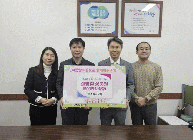 | Àǿսà ºÎ°î°¨¸®±³È¸, ¼³ ¸íÀý ¸Â¾Æ ºÎ°îµ¿Áֹμ¾ÅÍ¿¡ 500¸¸¿ø »ó´ç »óǰ±Ç ÈÄ¿ø =Çѽ¸ñ ±âÀÚ |