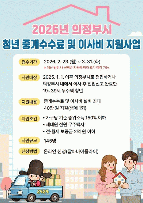 [NWS¹æ¼Û=Çѽ¸ñ ±âÀÚ]ÀÇÁ¤ºÎ½Ã´Â û³âµéÀÇ ÁÖ°Å ÀÌÀü ºñ¿ë ºÎ´ãÀ» ÁÙÀ̱â À§ÇÑ ¡®2026³â û³â Áß°³¼ö¼ö·á ¹× ÀÌ»çºñ Áö¿ø»ç¾÷¡¯ÀÇ ½ÅûÀÚ¸¦ ¸ðÁýÇÑ´Ù.