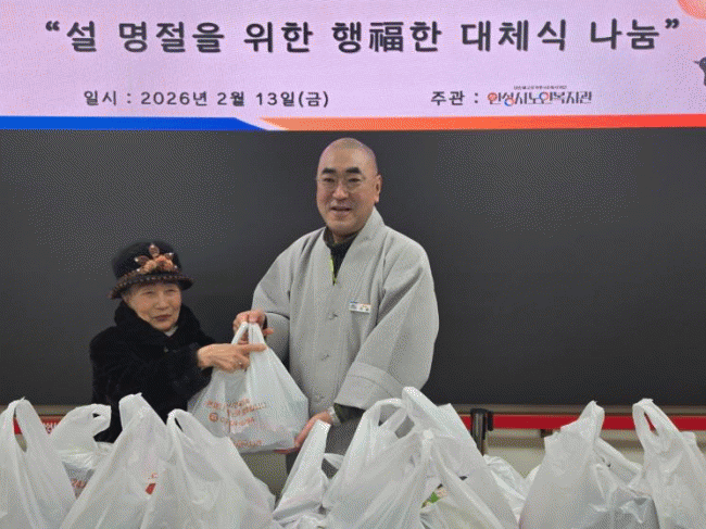 [NWS¹æ¼Û=Çѽ¸ñ ±âÀÚ]´ëÇѺұ³Á¶°èÁ¾»çȸº¹ÁöÀç´ÜÀÌ ¿î¿µÇÏ´Â ¾È¼º½Ã³ëÀκ¹Áö°üÀº ¼³ ¸íÀý ¿¬ÈÞ¸¦ ¸Â¾Æ 2¿ù 13ÀÏ ¹«·á±Þ½Ä ÀÌ¿ë ¾î¸£½ÅµéÀÇ °á½Ä ¿¹¹æ°ú ¾ÈÁ¤ÀûÀÎ ½Ä»ýȰ Áö¿øÀ» À§ÇØ ¡®2026³â ¼³ ¸íÀýÀ» À§ÇÑ ÇàÜØÇÑ ´ëü½Ä ³ª´®¡¯À» ÁøÇàÇß´Ù.