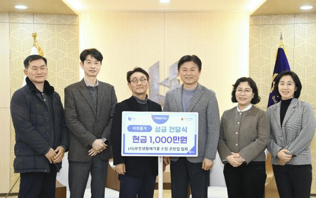 [NWS¹æ¼Û=Çѽ¸ñ ±âÀÚ]ºÎõ½Ã´Â ÃÖ±Ù (»ç)ºÎõ»ýȰÆó±â¹°¼öÁý¡¤¿î¹Ý¾÷Çùȸ·ÎºÎÅÍ ¼º±Ý 1,000¸¸ ¿øÀ» ±âŹ¹Þ¾Ò´Ù°í 19ÀÏ ¹àÇû´Ù. Àü´Þ½Ä¿¡´Â ¿°±âµ¿ ÀÌ»çÀåÀ» ºñ·ÔÇØ ±è°æ°ü °¨»ç, ¼³°üÁ¾ »ç¹«±¹Àå µî Çùȸ °ü°èÀÚ 3¸íÀÌ Âü¼®Çß´Ù.