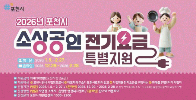 | Æ÷õ½Ã, ¼Ò»ó°øÀÎ Àü±â¿ä±Ý Ưº°Áö¿ø 28ÀÏ Á¢¼ö ¸¶°¨ =Çѽ¸ñ ±âÀÚ |