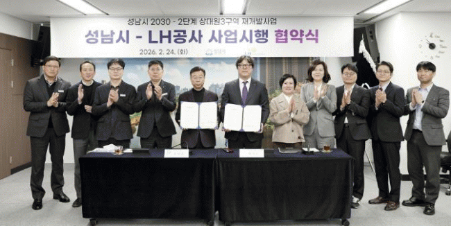 [NWS¹æ¼Û=Çѽ¸ñ ±âÀÚ]¼º³²½Ã´Â 24ÀÏ ¿ÀÀü 9½Ã30ºÐ Çѱ¹ÅäÁöÁÖÅðø»ç(LH)¿Í ¼º³² »ó´ë¿ø3±¸¿ª Àç°³¹ß»ç¾÷¿¡ ´ëÇÑ »ç¾÷½ÃÇàÇù¾àÀ» ü°áÇß´Ù.