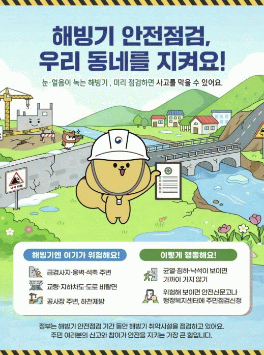 ¹Ú¿µ´ö ¾ÈÀü±³Åë±¹ÀåÀº ¡°Çغù±â´Â Áö¹Ý ¾àÈ·Î ÀÎÇØ ºØ±«¡¤Àüµµ µî ¾ÈÀü»ç°í À§ÇèÀÌ Ä¿Áö´Â ½Ã±â¡±¶ó¸ç ¡°ÁÖº¯¿¡ À§ÇèÀÌ ¿ì·ÁµÇ´Â ½Ã¼³¹°ÀÌ ÀÖÀ¸¸é ÁÖ¹ÎÁ¡°Ë½ÅûÁ¦¸¦ Àû±Ø Ȱ¿ëÇØ Áֽñ⸦ ¹Ù¶õ´Ù¡±¶ó°í ¸»Çß´Ù