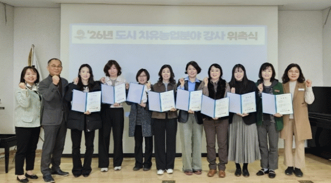 [NWS¹æ¼Û=Çѽ¸ñ ±âÀÚ]ÆòÅýô Áö³ 24ÀÏ ³ó¾÷±â¼ú¼¾ÅÍ¿¡¼ ¡®2026³â µµ½Ã¡¤Ä¡À¯³ó¾÷ °»ç À§Ã˽ġ¯À» ¿°í ÃÑ 11¸í(µµ½Ã³ó¾÷°ü¸®»ç 8¸í, Ä¡À¯³ó¾÷»ç 3¸í)ÀÇ °»ç¸¦ À§ÃËÇß´Ù°í ¹àÇû´Ù.