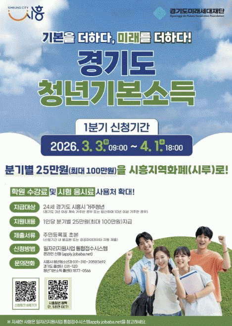 | ½ÃÈï½Ã, 1ºÐ±â û³â±âº»¼Òµæ ½Åû °³½Ã 24¼¼ û³â ´ë»ó ºÐ±â 25¸¸¿ø Áö±Þ¡¦ 4¿ù 1ÀϱîÁö ¿Â¶óÀÎ ½Åû =Çѽ¸ñ ±âÀÚ |