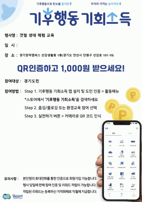 '±âÈÄÇൿ ±âȸ¼Òµæ'Àº °æ±âµµ°¡ µµ¹Î°ú ÇÔ²² ź¼ÒÁ߸³ ½ÇõÀ» À§ÇØ °æ±âȯ°æ¿¡³ÊÁöÁøÈï¿ø ÁÖ°üÀ¸·Î ÃßÁøÇÏ´Â Âü¿©Çü Á¤Ã¥ »ç¾÷À¸·Î µµ¹ÎµéÀÌ Àü¿ë ¾îÇø®ÄÉÀ̼ÇÀ» ÅëÇØ ±âÈÄÇൿ ½Çõ Ȱµ¿À» ÀÎÁõÇÒ °æ¿ì ¿¬°£ ÃÖ´ë 1¸¸¿ø ¹üÀ§ ³»¿¡¼ Áö¿ªÈÆó ¸®¿öµå¸¦ Áö±Þ¹ÞÀ» ¼ö ÀÖµµ·Ï ±¸¼ºµÇ¾î ÀÖ´Ù. °æ±ââÀÛÄ·ÆÛ½º´Â °æ±â ¼ÇØ ¹Ù´ÙÀÇ »ýÅ ȯ°æÀ» ¹ÙÅÁÀ¸·Î Á¶¼ºµÈ üÇèÇü ±³À° °ø°£ÀÎ ¡®°¹¹ú³îÀÌÅÍ¡¯ üÇè Ȱµ¿À» '±âÈÄÇൿ ±âȸ¼Òµæ' »ç¾÷ Áß ±âÈÄÇൿ ½Çõ Ȱµ¿ ȯ°æ±³À°À¸·Î ½ÂÀÎ¹Þ¾Æ ¿î¿µÇÏ°Ô µÈ´Ù.