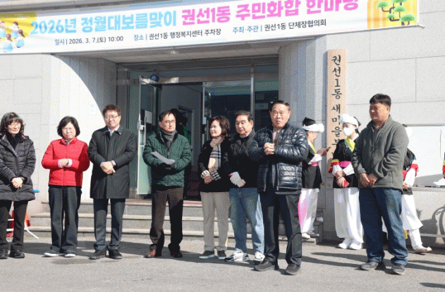 [NWS¹æ¼Û=Çѽ¸ñ ±âÀÚ]¼ö¿øÆ¯·Ê½ÃÀÇȸ´Â 7ÀÏ ±Ç¼±1µ¿ ÇàÁ¤º¹Áö¼¾ÅÍ ÁÖÂ÷Àå¿¡¼ ¿¸° '2026 ±Ç¼±1µ¿ Á¤¿ù´ëº¸¸§ ô»ç´ëȸ'¿¡ Âü¼®ÇØ Áֹεé°ú ÇÔ²² ÀüÅë ¸íÀýÀÇ Àǹ̸¦ ³ª´©¸ç Áö¿ª °øµ¿Ã¼ ÈÇÕÀÇ ½Ã°£À» °¡Á³´Ù.
