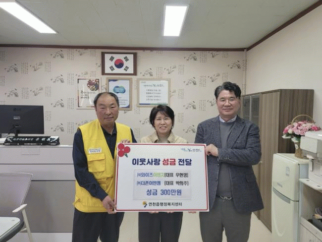 [NWS¹æ¼Û=Çѽ¸ñ ±âÀÚ]¿¬Ãµ±º ¼ÒÀç ¢ß¿ÍÀÌÁîÀ̾ØÁö¿Í ¢ß´õÁ¸ÀÌ¿£¿¥Àº Áö³ 9ÀÏ ¿¬ÃµÀ¾ ÇàÁ¤º¹Áö¼¾Å͸¦ ¹æ¹®ÇØ °ü³» ¾î¸£½ÅµéÀ» À§ÇÑ °æ·ÎÀÜÄ¡ Áغñ¿¡ ½á´Þ¶ó¸ç ¼º±Ý 300¸¸¿øÀ» ±âŹÇß´Ù.