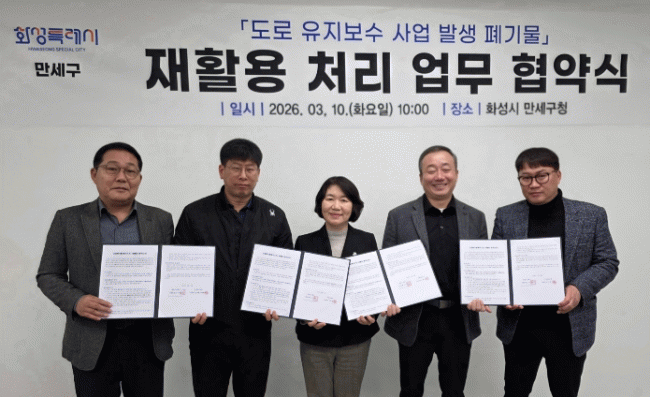 [NWS¹æ¼Û=Çѽ¸ñ ±âÀÚ]È­¼ºÆ¯·Ê½Ã ¸¸¼¼±¸°¡ µµ·Î À¯Áöº¸¼ö °úÁ¤¿¡¼­ ¹ß»ýÇÏ´Â Æó±â¹°À» È¿À²ÀûÀ¸·Î ó¸®Çϰí ÀÚ¿ø ÀçȰ¿ëÀ» È®´ëÇϱâ À§ÇØ °ü³» ¾Æ½ºÄÜ »ý»ê ¾÷ü¿Í ¡®Æó¾Æ½ºÄÜ ÀçȰ¿ë ó¸® Çù¾à¡¯À» ü°áÇß´Ù.